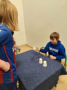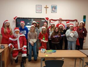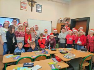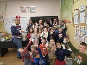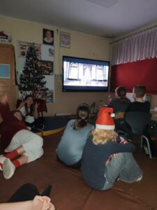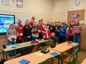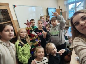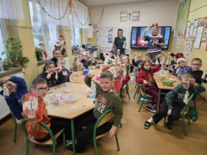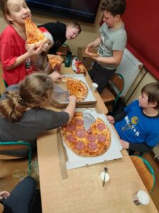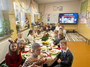 W dniu 5.12.2025 r. spotkaliśmy się, aby aktywnie spędzić razem czas. Graliśmy w zbijaka, siatkówkę, gry planszowe, taniec z krzesełkami oraz klasowe kalambury świąteczne. W przerwie od zabaw uraczyliśmy się pizzą. Dziękujemy rodzicom za upominki mikołajkowe!