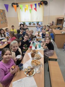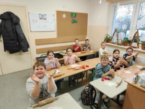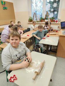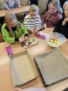 Klasa 4 spędziła dziś lekcję wychowawczą w wyjątkowo ciekawy i twórczy sposób. Uczniowie wspólnie piekli pyszne ciasteczka, a następnie ozdabiali swoją salę. Lekcja ta uczyła współpracy, odpowiedzialności i dzielenia się zadaniami. Wspólne pieczenie ciastek sprzyjało budowaniu relacji i integracji klasy, a dekorowanie sali rozwijało kreatywność i poczucie wspólnoty. Uczniowie mieli okazję doświadczyć, jak wiele można osiągnąć działając razem w przyjaznej atmosferze