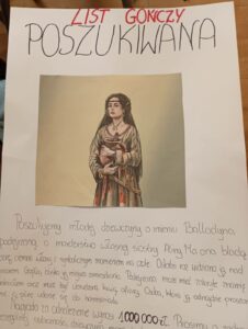 Na lekcjach języka polskiego w klasie 8 uczniowie, podczas omawiania tragedii Juliusza Słowackiego „Balladyna”, gromadzili – na podstawie lektury – materiały dowodowe świadczące przeciwko głównej bohaterce utworu – Balladynie, by na kolejnych lekcjach dokonać nad nią sądu.