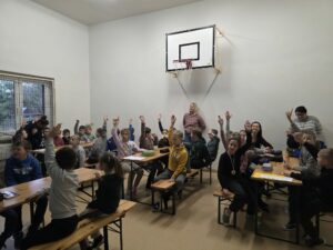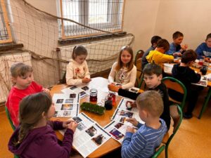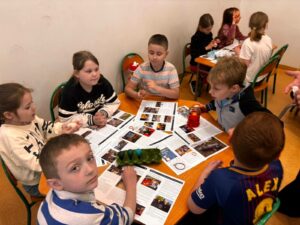 21 października br. nasi najmłodsi uczniowie (z klas 0-3) spotkali się, aby utrwalić wiadomości o miejscowościach, w których mieszkają. Podczas zajęć rozwiązywali zagadki, wykonywali prace plastyczne oraz uczestniczyli w różnych zabawach edukacyjnych. Wspólna aktywność sprzyjała rozwijaniu zainteresowania najbliższym otoczeniem i poznawaniu jego charakterystycznych miejsc. Uczniowie z zaangażowaniem dzielili się swoją wiedzą i doświadczeniami związanymi z regionem. Spotkanie było doskonałą okazją do kształtowania poczucia tożsamości regionalnej oraz pogłębiania więzi z małą ojczyzną.