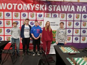Zawody w szachach zespołowych na szczeblu wojewódzkim (które odbyły się w Nowym Tomyślu) nasza drużyna w składzie