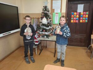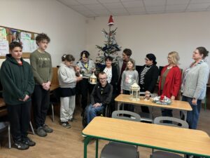 elementów do złożenia. Choć zestawy były przygotowane wcześniej, to właśnie dzieci nadały im wyjątkowy charakter. Piękne, nastrojowe lampiony, wprowadzają już w klasie prawdziwie świąteczny