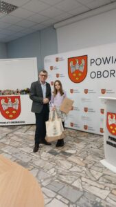 Podczas uroczystego wręczenia nagród uczniowie otrzymali wyróżnienie oraz nagrody rzeczowe, które wręczyli przedstawiciele Starostwa Powiatowego w Obornikach.