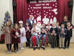 Gratulujemy laureatkom oraz dziękujemy wszystkim uczestnikom Lece klasa V, Tosi klasa V, Korneli klasa V, Wiktorowi klasa V, Dagmarze klasa IV, Gabrysi klasa IV, Amelce klasa IV. Cezaremu klasa IV, Miłoszowi klasa IV, Marcie klasa II, Majce klasa I, Wojtkowi klasa I, oraz przedszkolakom Zuzi, Gabrysi, Oliwi, Madzi i Mateuszowi za ogromne zaangażowanie i wniesienie do konkursu tak wiele świątecznej magii.