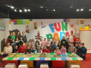 W dniu 17 października 2025 r. dzieci z przedszkola, uczniowie klas 1-3 oraz uczniowie z kl.4-8, wybrali się do MDK w Wągrowcu na spektakle teatralne pt.”Czarodziejski ołówek” (dzieci młodsze) i ” W Pustyni i Sieci” (uczniowie starsi) przygotowane przez Poznański Teatr Aktora.