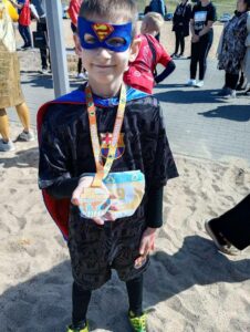 Robert – uczeń klasy 1 w miniony weekend wziął udział w bieg Superbohaterów, który został zorganizowany przez Fundację „Ja nie mogę czekać” z Obornik na rzecz ich podopiecznych.